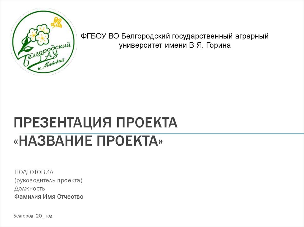 ФГБОУ ВО Белгородский государственный аграрныйуниверситет имени В.Я. Горина