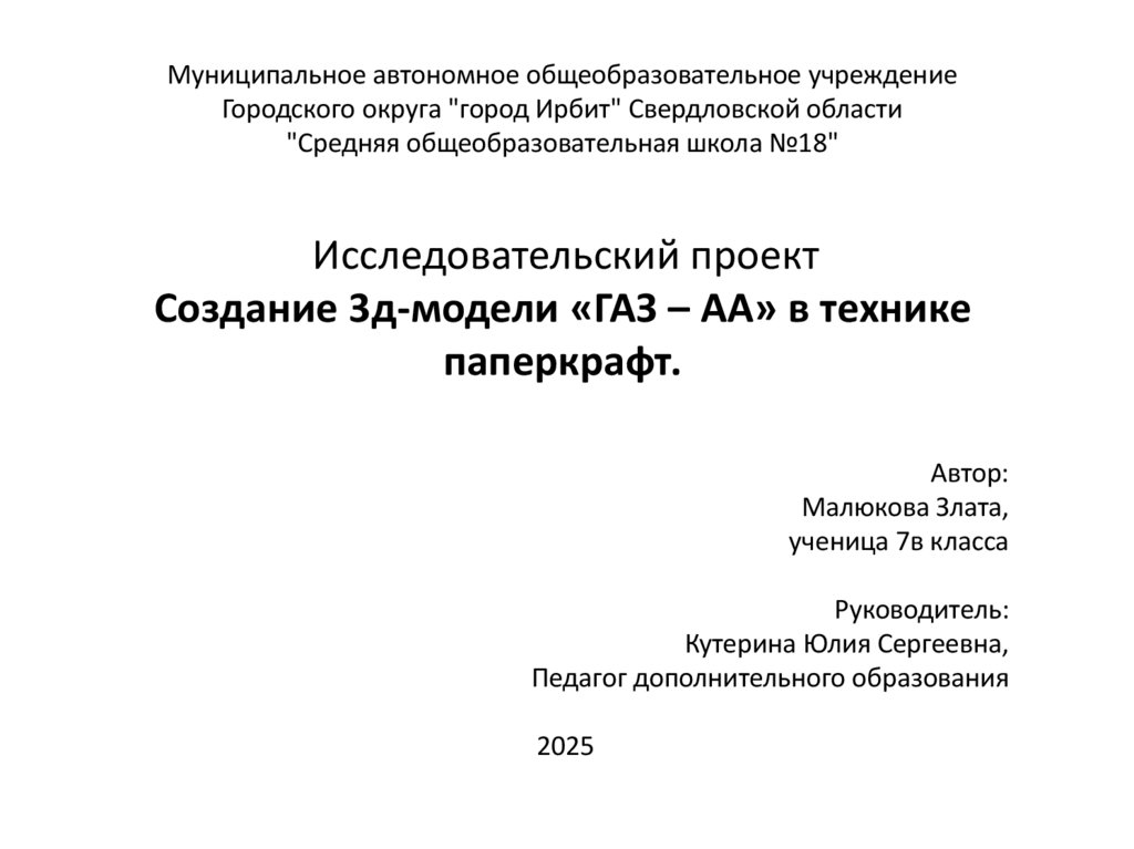 Цель проекта: создание объемной модели ГАЗ - ААЗадачи: