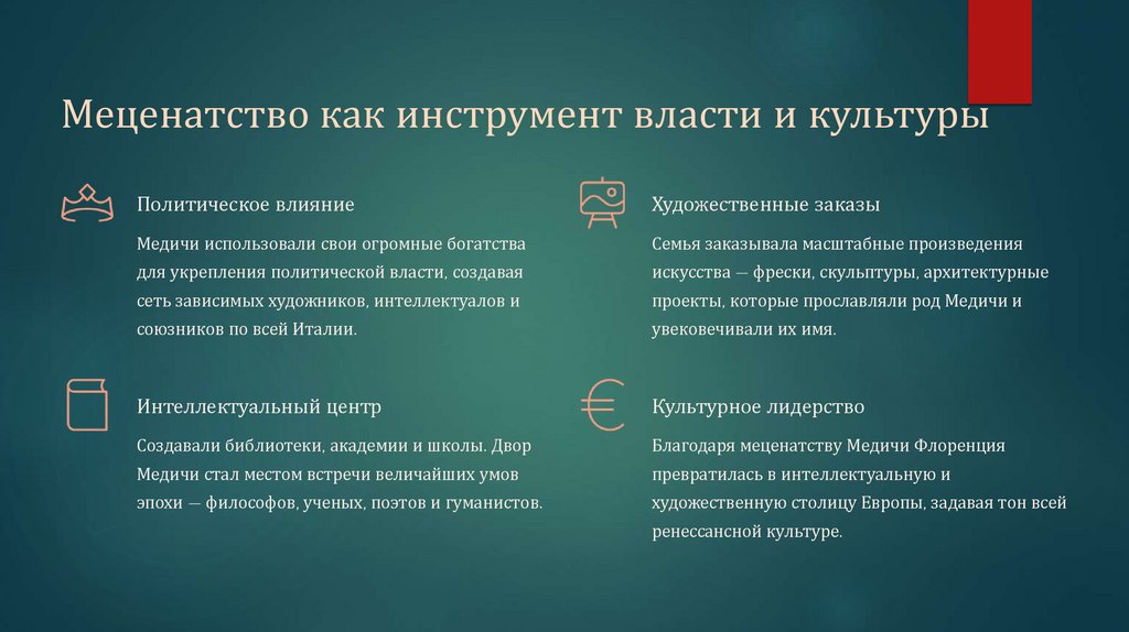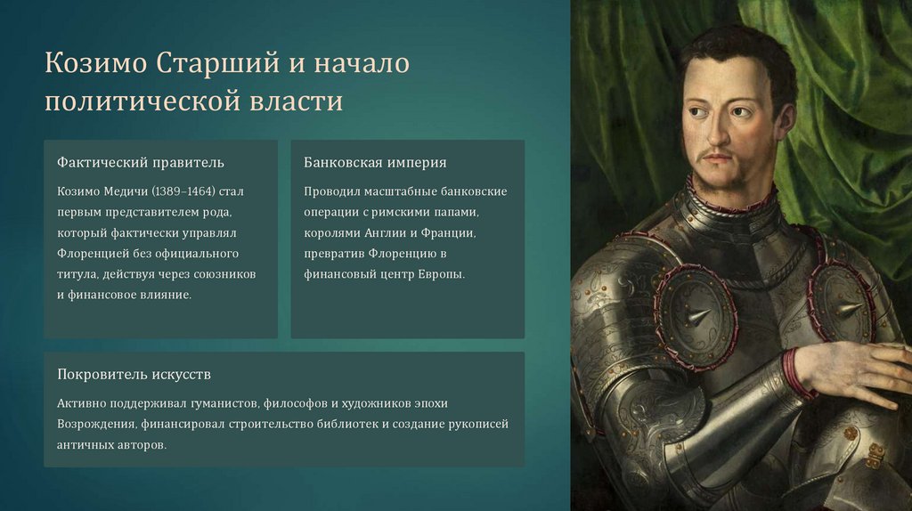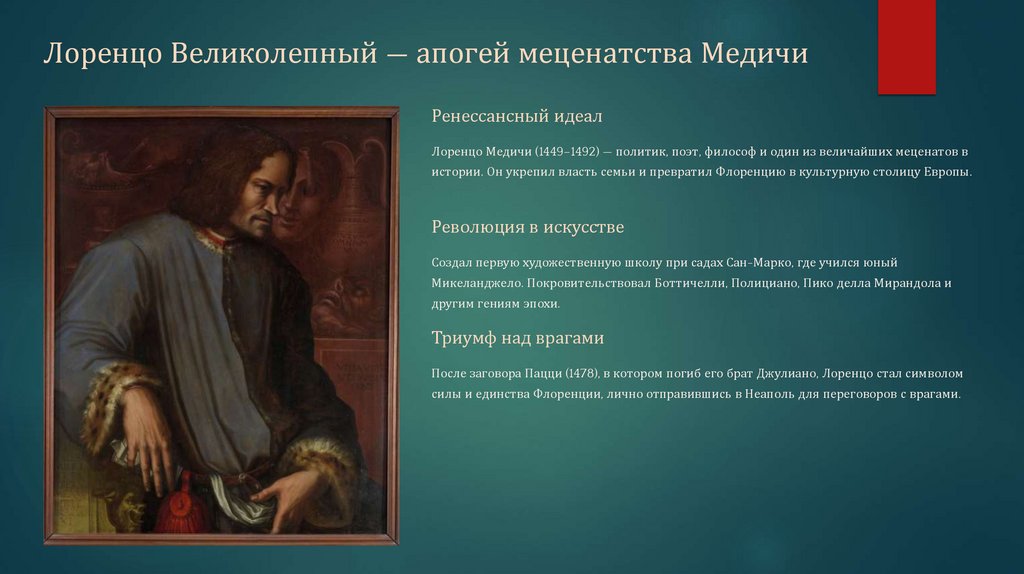 истории. Он укрепил власть семьи и превратил Флоренцию в культурную столицу Европы.