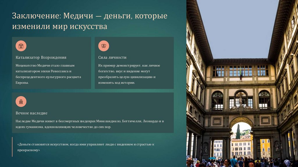Заключение: Медичи — деньги, которыеизменили мир искусства