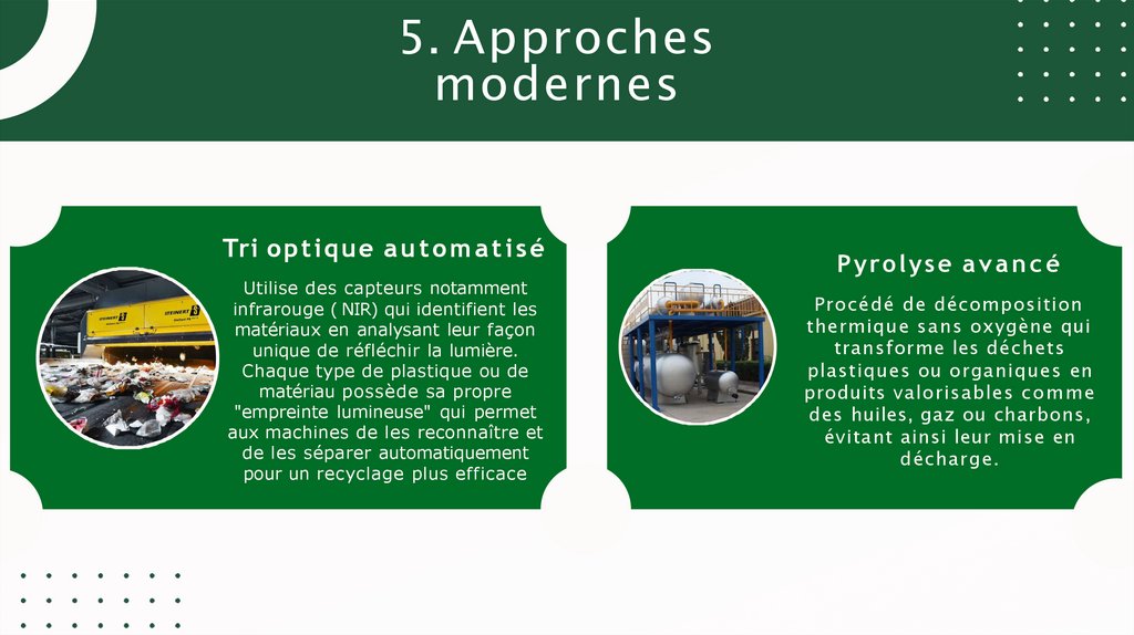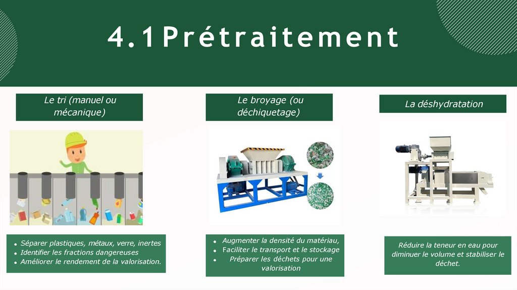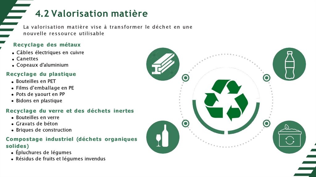 4.2 Valorisation matièreLa v a l o r i s a ti o n m a t i è r e vise à t r a n s f o r m e r le d é c h e t en une