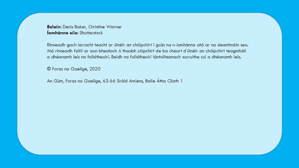 Rinneadh gach iarracht teacht ar úinéir an chóipchirt i gcás na n-íomhánna atá ar na sleamhnáin seo.