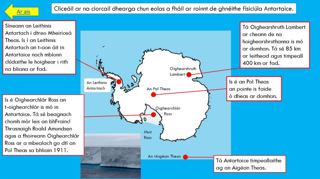 Cliceáil ar an ilchríoch ar mhaith leat foghlaim fúithi inniu.Antartaice
