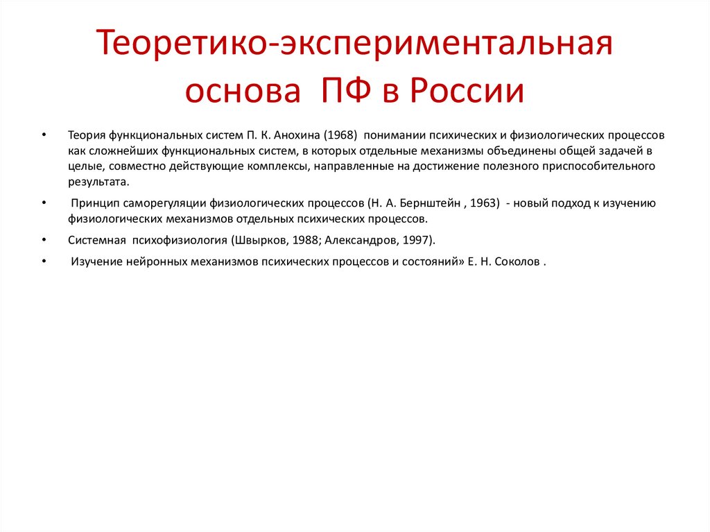 Системная психофизиология (Швырков, 1988; Александров, 1997).