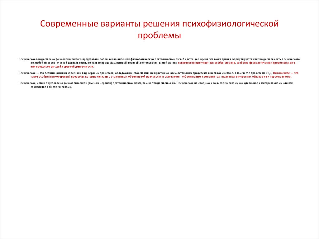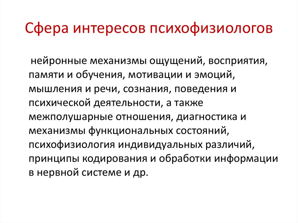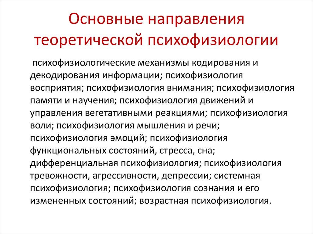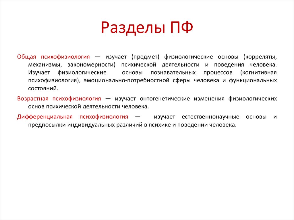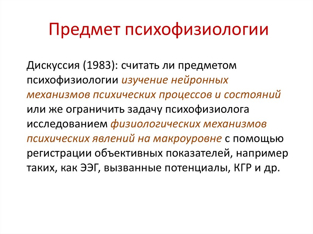 В настоящее время понимается как отрасль психологической науки, изучающая физиологические механизмы