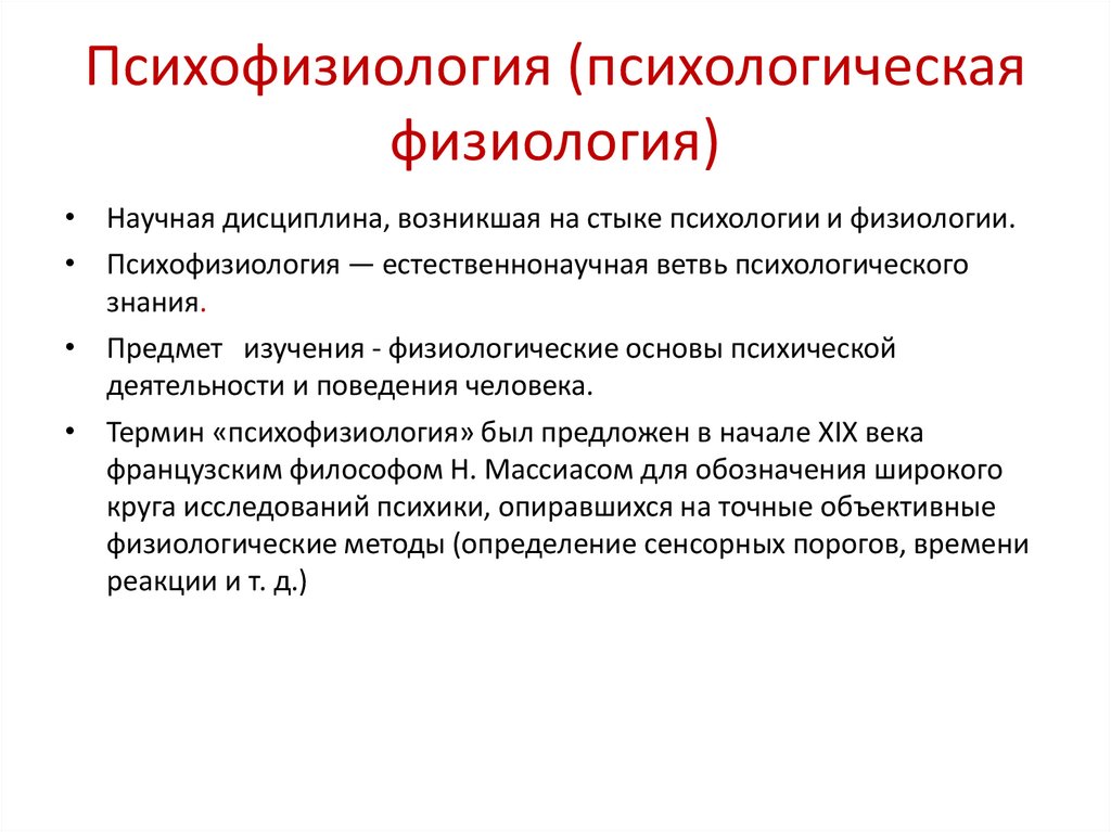 • Научная дисциплина, возникшая на стыке психологии и физиологии.