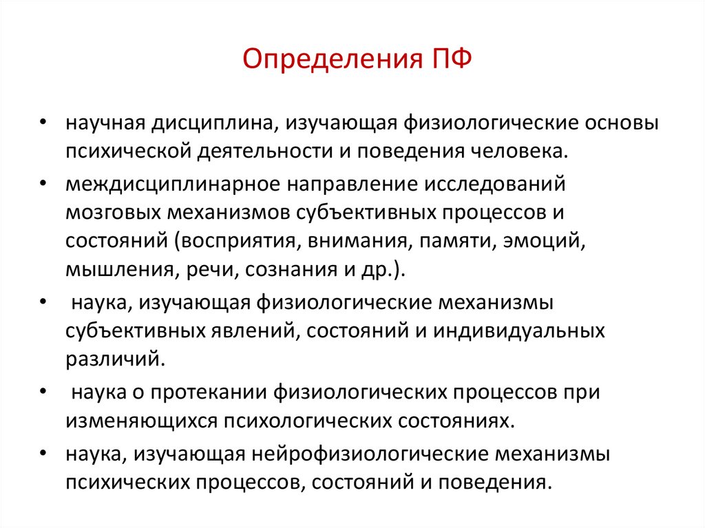 Определения ПФ• научная дисциплина, изучающая физиологические основы