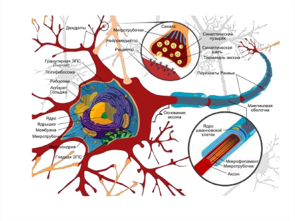 нервных окончаний изображаются крупнее, чем туловище и ноги.
