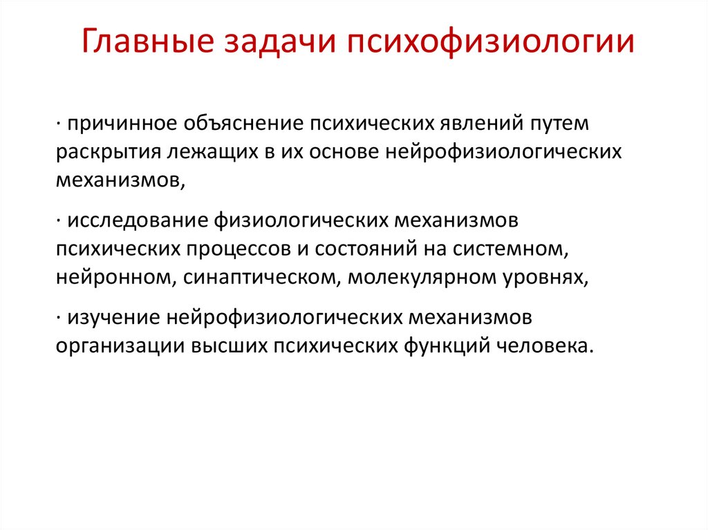 Главные задачи психофизиологии· причинное объяснение психических явлений путем