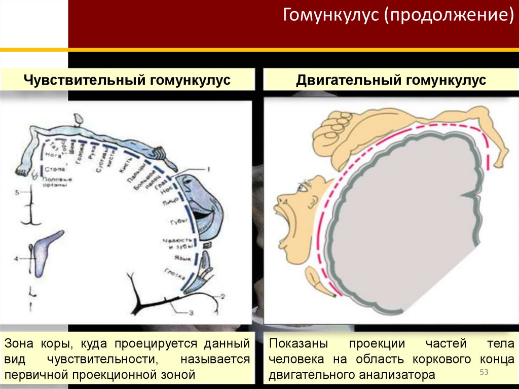 Схематично его изображают в виде «гомункулуса» (человечка), части