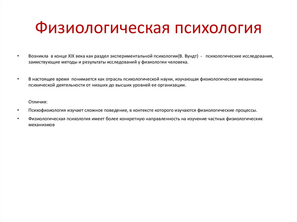 Физиологическая психология имеет более конкретную направленность на изучение частных физиологических
