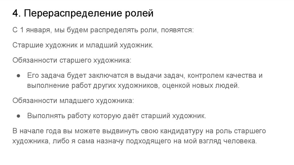 4. Перераспределение ролейС 1 января, мы будем распределять роли, появятся: