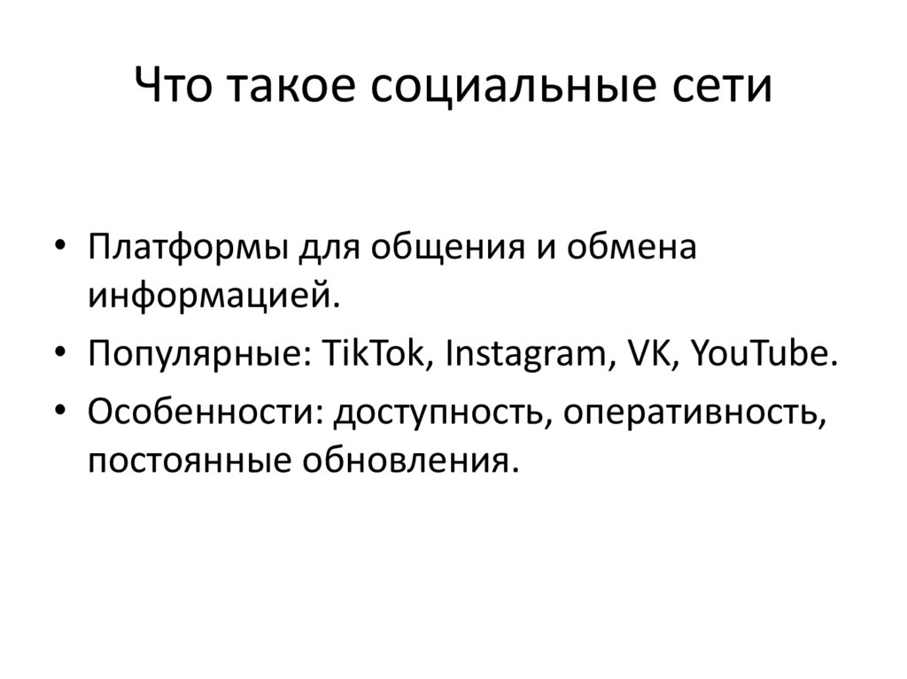 • Популярные: TikTok, Instagram, VK, YouTube.