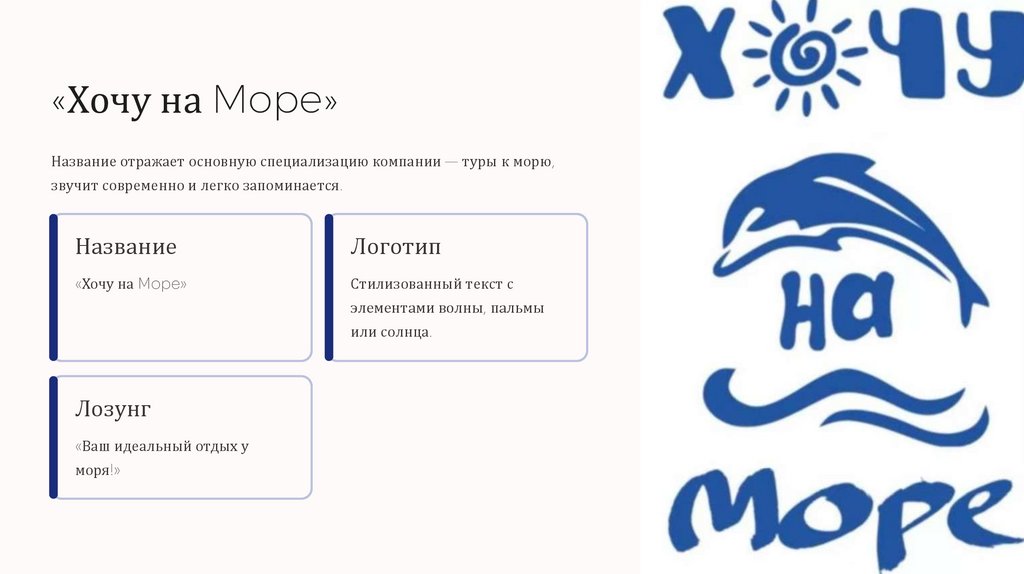 «Хочу на Mope»Название отражает основную специализацию компании — туры к морю,