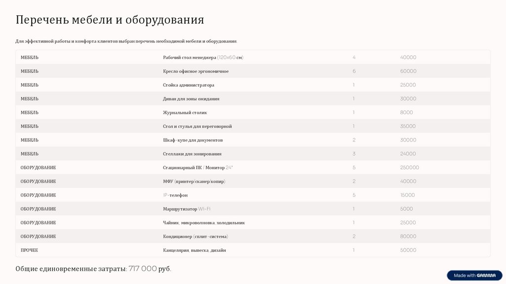 Мебель и оборудование: 717 000 руб.