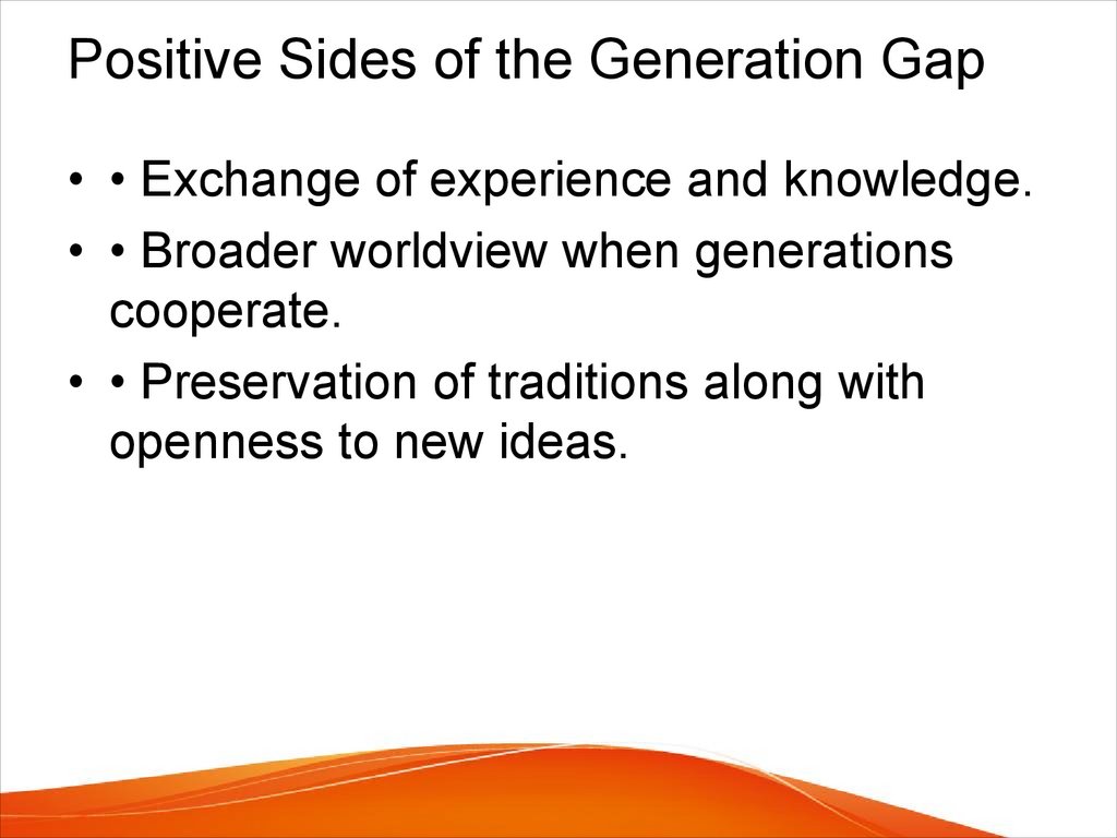 Positive Sides of the Generation Gap• • Exchange of experience and knowledge.