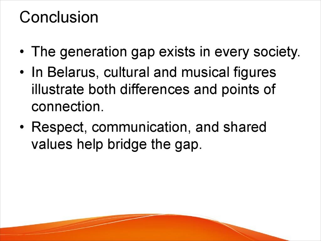 Conclusion• The generation gap exists in every society.