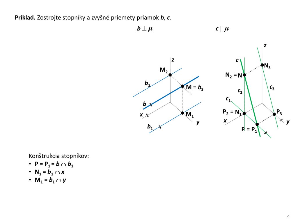 Príklad. Zostrojte stopníky a zvyšné priemety priamok b, c.b⊥