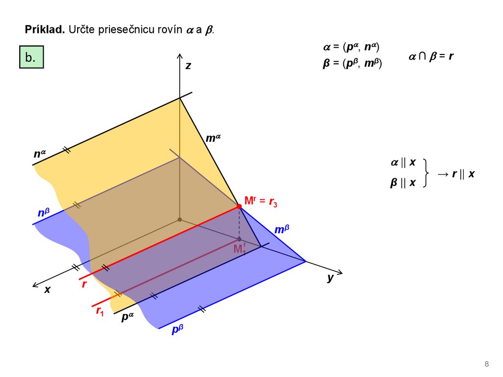 Príklad. Určte priesečnicu rôznobežných rovín: r = .a.