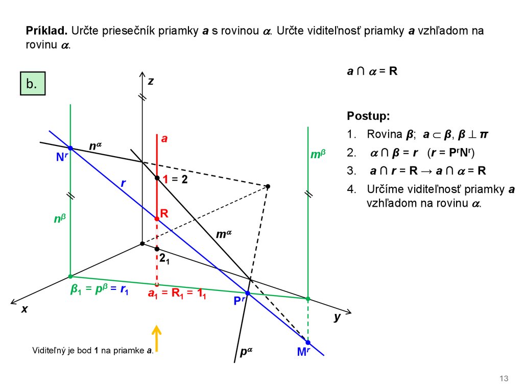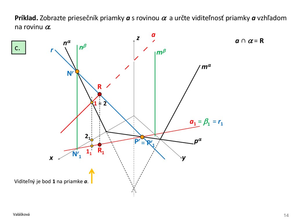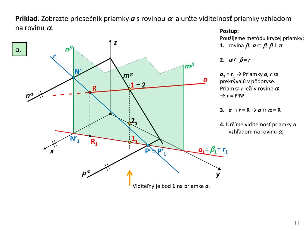 Príklad. Určte priesečník priamky a s rovinou . Určte viditeľnosť priamky a vzhľadom narovinu .