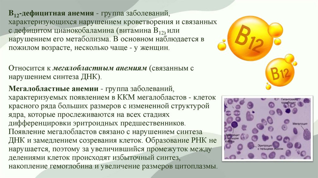 B12-дефицитная анемия - группа заболеваний,характеризующихся нарушением кроветворения и связанных