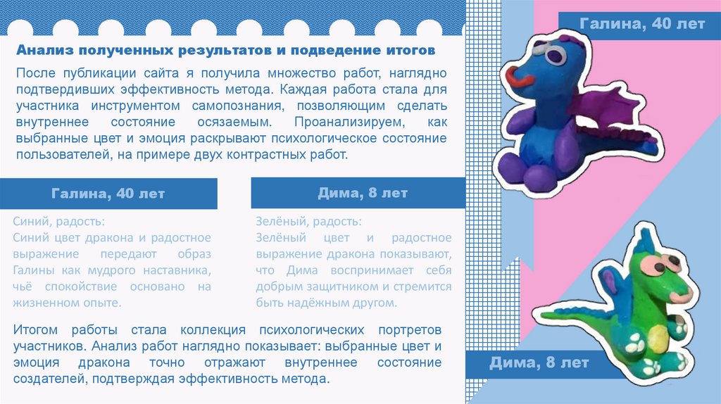 участников. Анализ работ наглядно показывает: выбранные цвет и