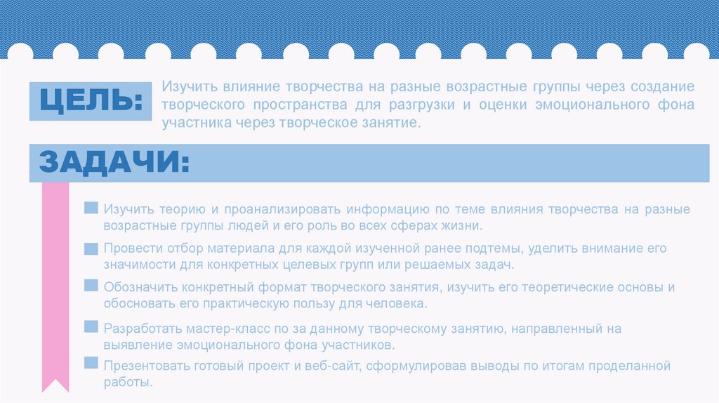 ЦЕЛЬ:Изучить влияние творчества на разные возрастные группы через создание