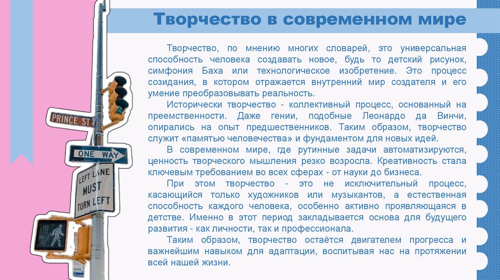 Творчество в современном миреТворчество, по мнению многих словарей, это универсальная