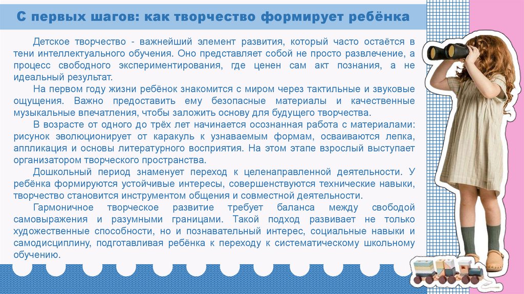 С первых шагов: как творчество формирует ребёнкаДетское творчество - важнейший элемент развития, который часто остаётся в