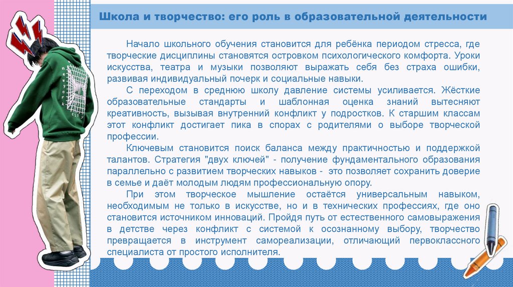 креативность, вызывая внутренний конфликт у подростков. К старшим классам