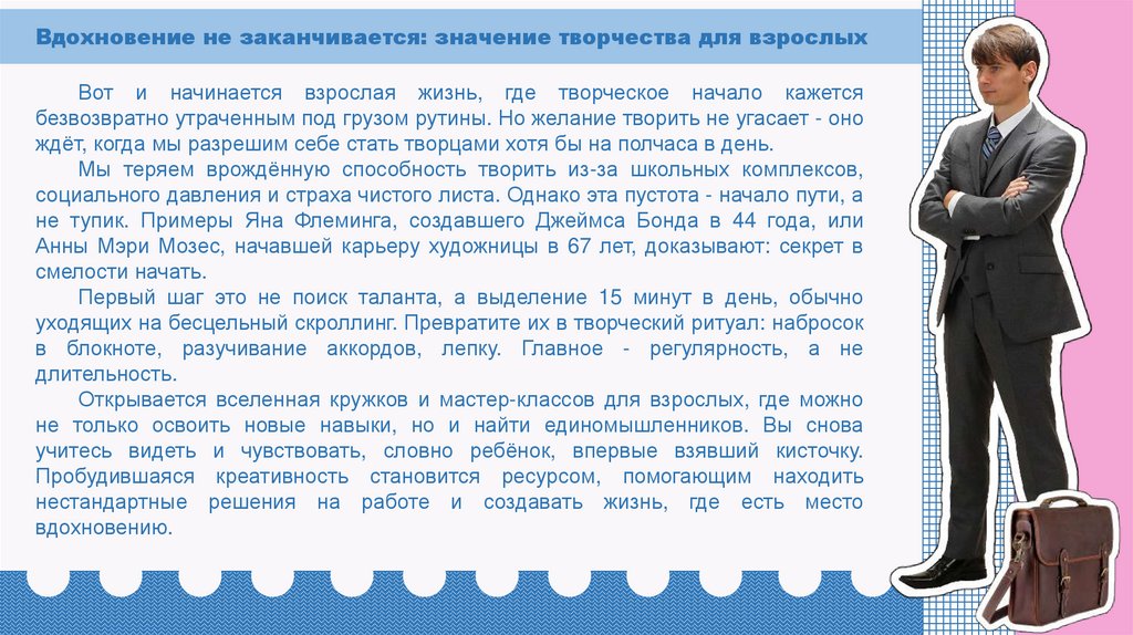 Вдохновение не заканчивается: значение творчества для взрослыхВот и начинается взрослая жизнь, где творческое начало кажется
