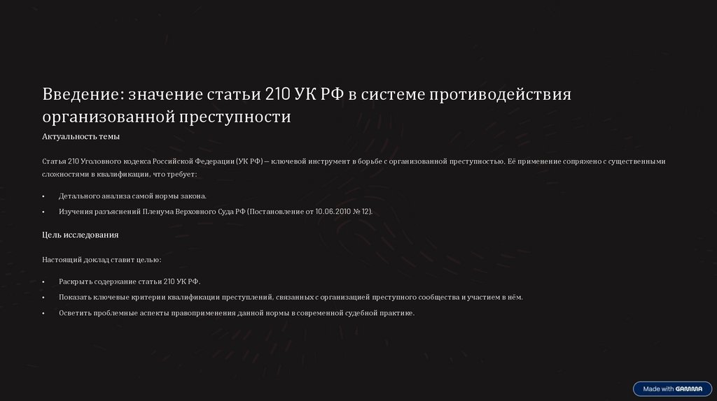 Введение: значение статьи 210 УК РФ в системе противодействияорганизованной преступности