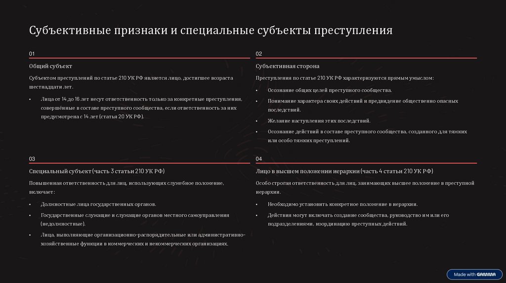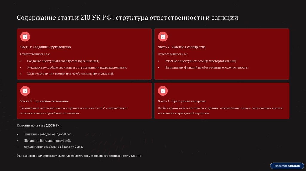 Содержание статьи 210 УК РФ: структура ответственности и санкцииЧасть 1: Создание и руководство
