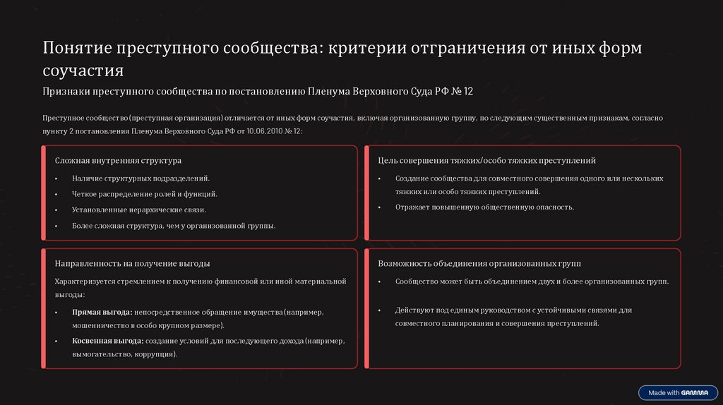 Понятие преступного сообщества: критерии отграничения от иных формсоучастия