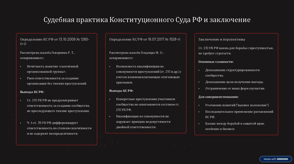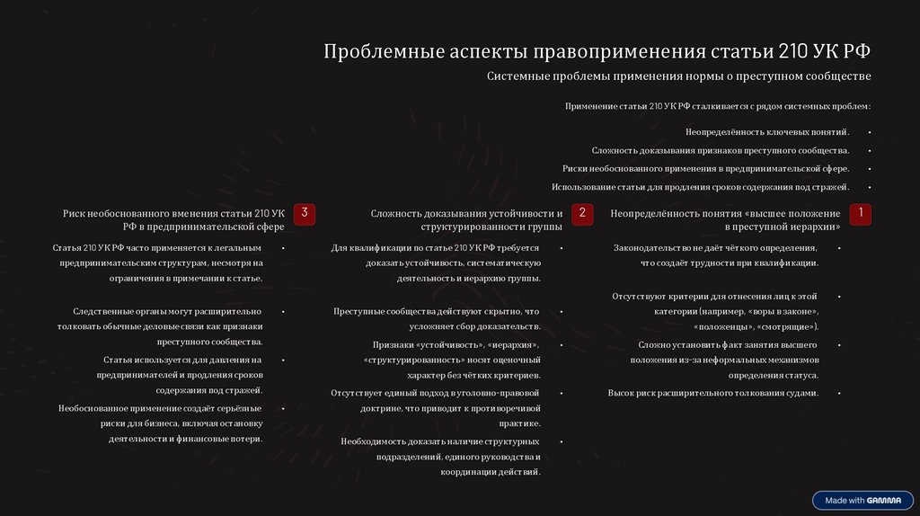 Применение статьи 210 УК РФ сталкивается с рядом системных проблем: