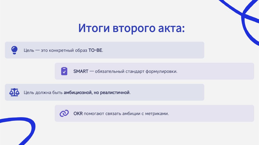 Итоги второго акта:Цель — это конкретный образ TO-BE.