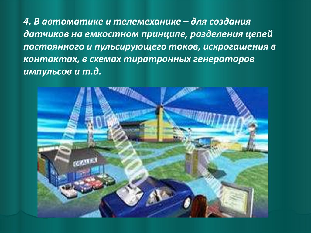 4. В автоматике и телемеханике – для созданиядатчиков на емкостном принципе, разделения цепей