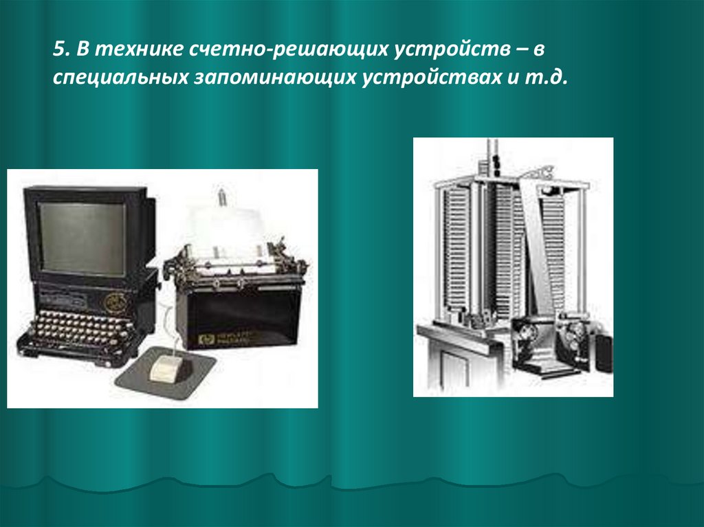 5. В технике счетно-решающих устройств – вспециальных запоминающих устройствах и т.д.