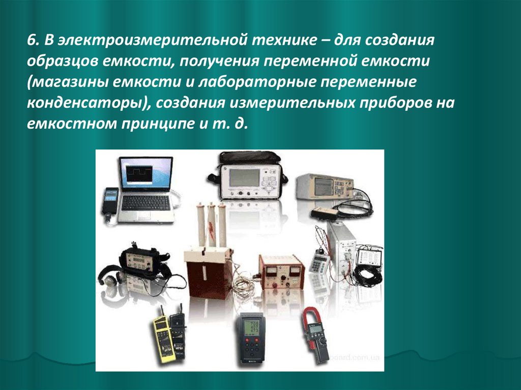 6. В электроизмерительной технике – для созданияобразцов емкости, получения переменной емкости
