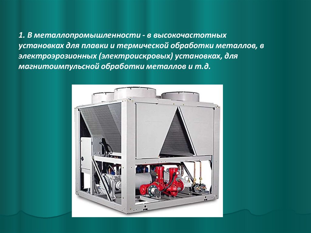 1. В металлопромышленности - в высокочастотныхустановках для плавки и термической обработки металлов, в
