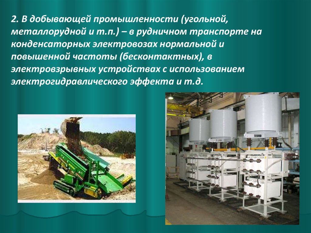 2. В добывающей промышленности (угольной,металлорудной и т.п.) – в рудничном транспорте на