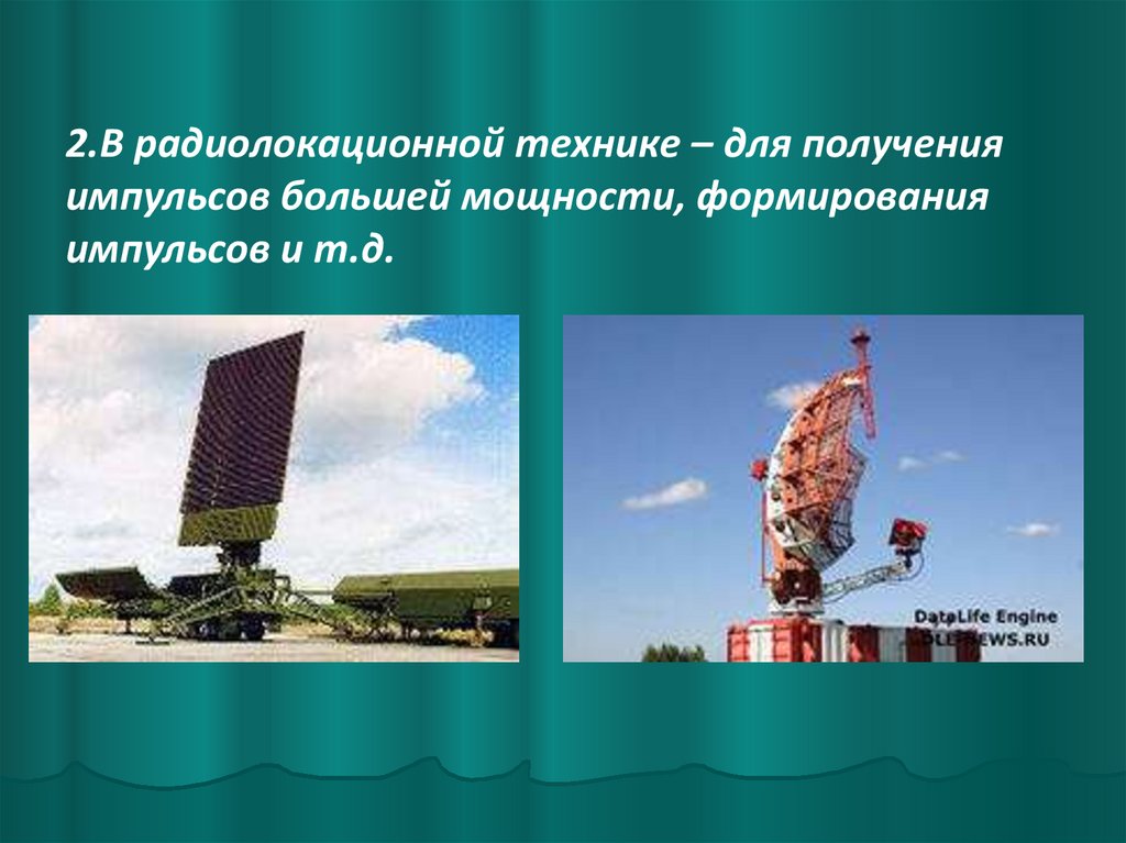 2.В радиолокационной технике – для полученияимпульсов большей мощности, формирования