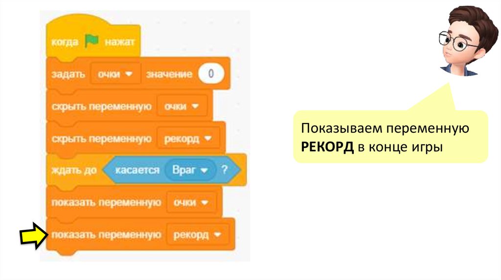 Показываем переменнуюРЕКОРД в конце игры