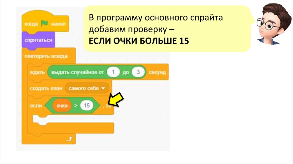В программу основного спрайтадобавим проверку –