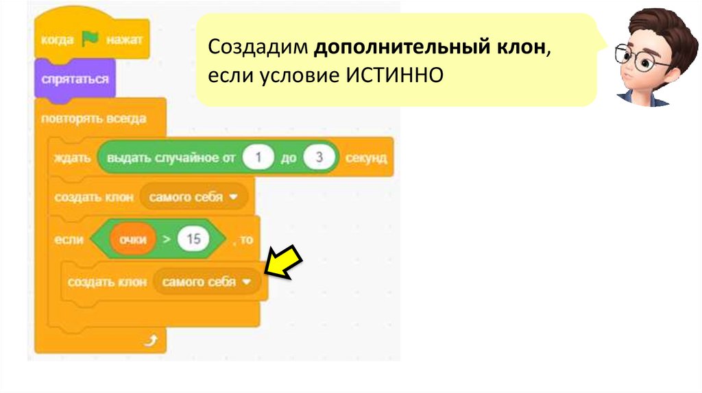 Создадим дополнительный клон,если условие ИСТИННО