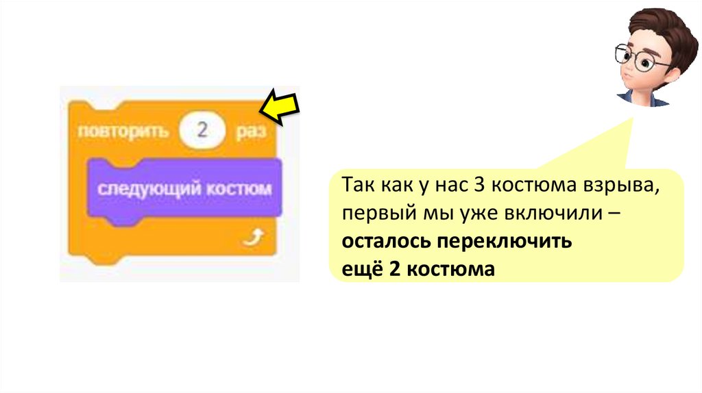 Так как у нас 3 костюма взрыва,первый мы уже включили –