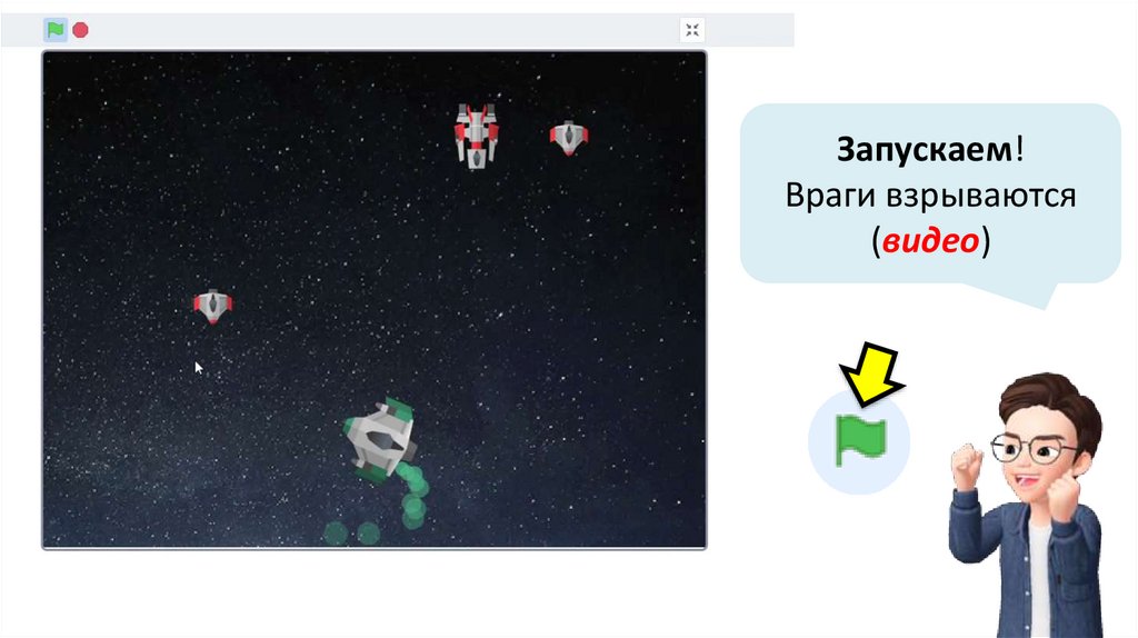 Запускаем!Враги взрываются