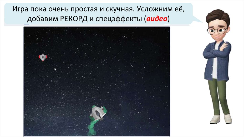 Игра пока очень простая и скучная. Усложним её,добавим РЕКОРД и спецэффекты (видео)