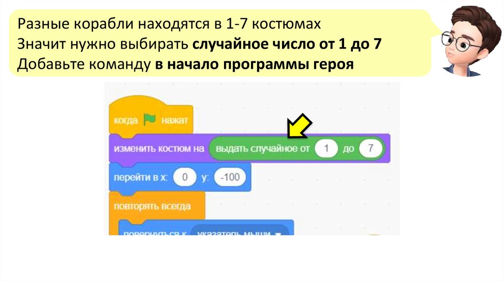 Разные корабли находятся в 1-7 костюмахЗначит нужно выбирать случайное число от 1 до 7