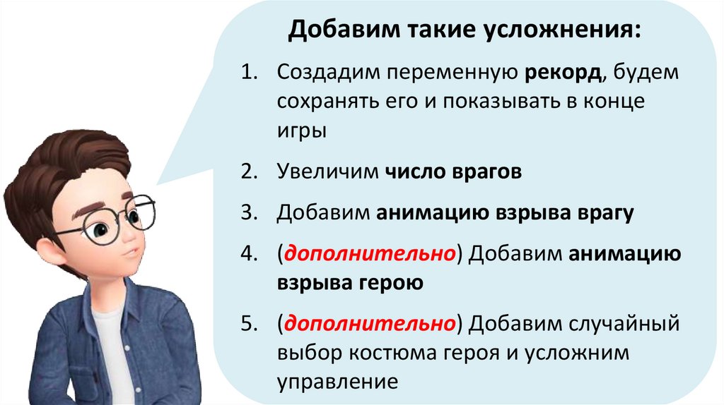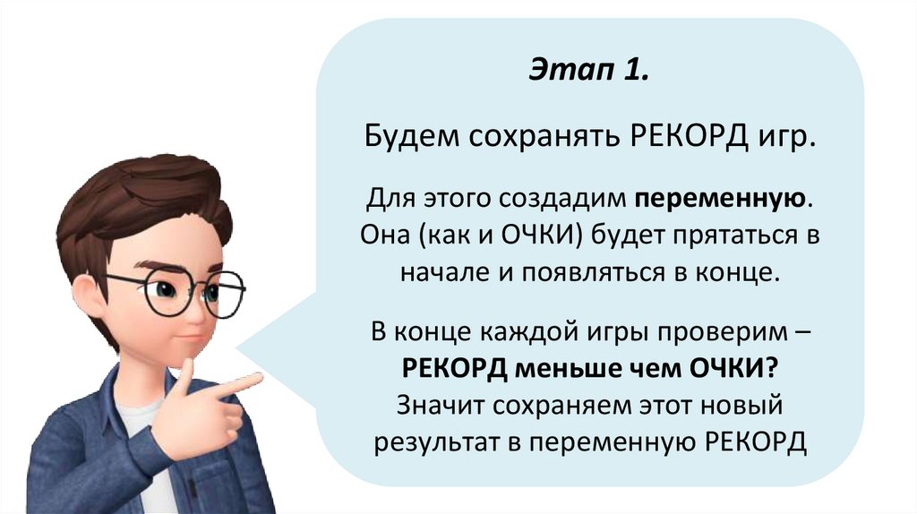 Добавим такие усложнения:1. Создадим переменную рекорд, будем